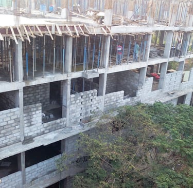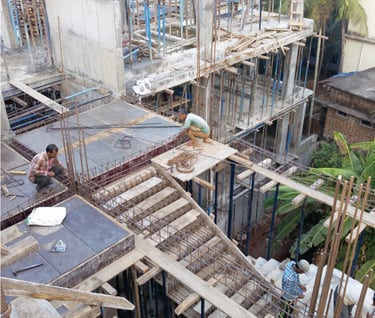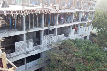 I remember the day, when we first discussed the structural aspects of the building with Architects M/s Nazer Associates, Calicut. A group of young, dynamic team of “helping hands” was also there for the discussion. As the ideas of helping hands and the concept of the architect worked together, the steep sloped hilly terrain become a magnificent structure with 4 floors above and 3 floors below the ground level. Structural design was the one optimizing both the economy and strength. A small water source met below the foundation at bottom most floor kept as such. By the grace of Allah, it served the full water requirement for the building construction and hope it will meet the needs of the inhabitants.